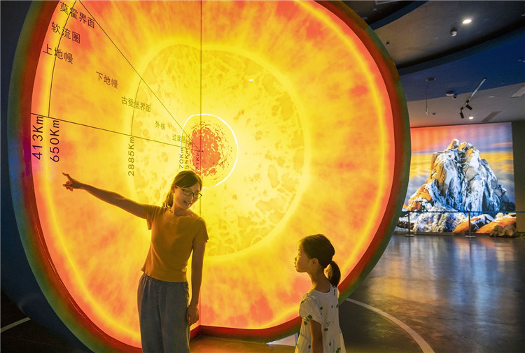 总建筑面积5780平方米,以石破天惊为设计理念,采用先进科学技术分三层动态展示地球的演变、天柱山的形成、生命的进化以及天柱山地区独具特色的民俗文化,它打破传统博物馆枯燥的展陈模式,借助智能化终端,动态演绎地质事件,同时增加趣味性小游戏,让游客在轻松、愉快的氛围中获取知识。