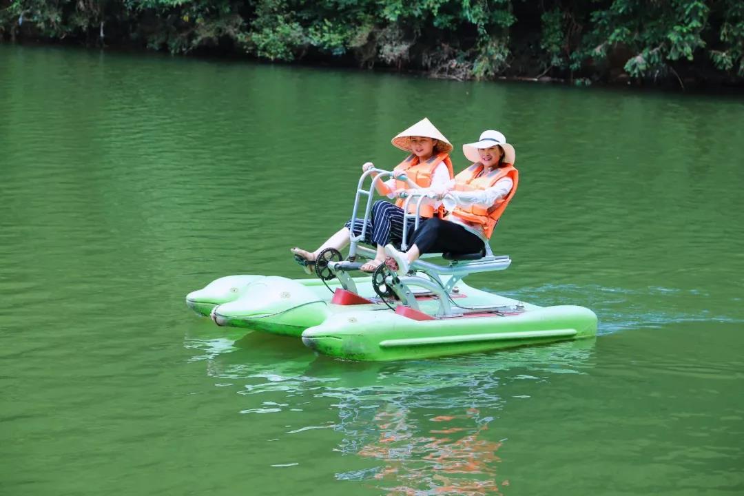 我们到达湖面的另一边,水面上放置的有水上自行车,还有水上碰碰车,最后我和小伙伴准备去尝试水上自行车,于是踏上自行车,起初,没掌握经验,自行车就不停地在原地打旋,经验告诉我们,要与小伙伴搭配协调,团结协作。亲自体验骑行水上自行车,湖面微风带来的清凉,酣畅淋漓。